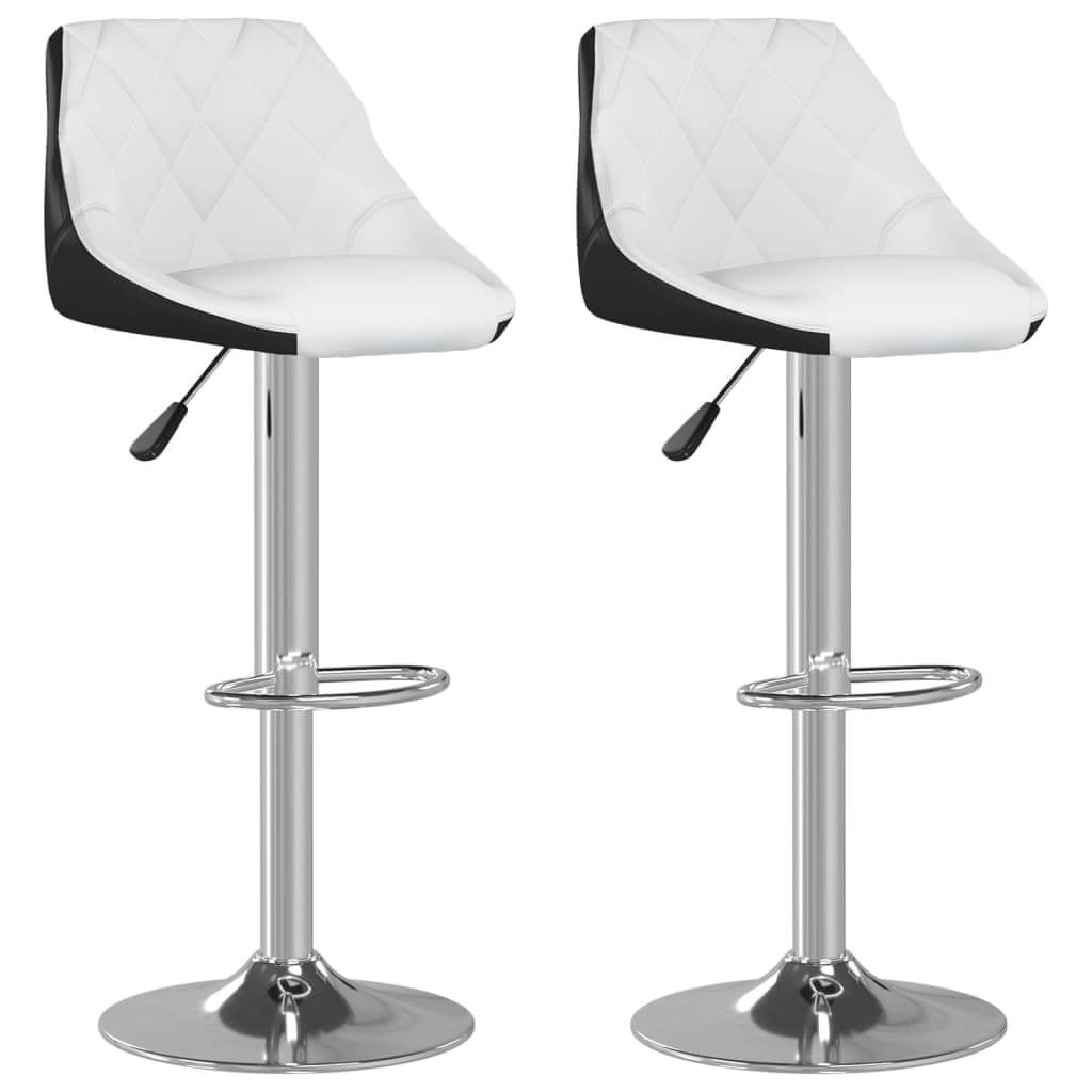 Bar Stools 2 pcs White and Faux Leather with chromed steel frame and adjustable height design.