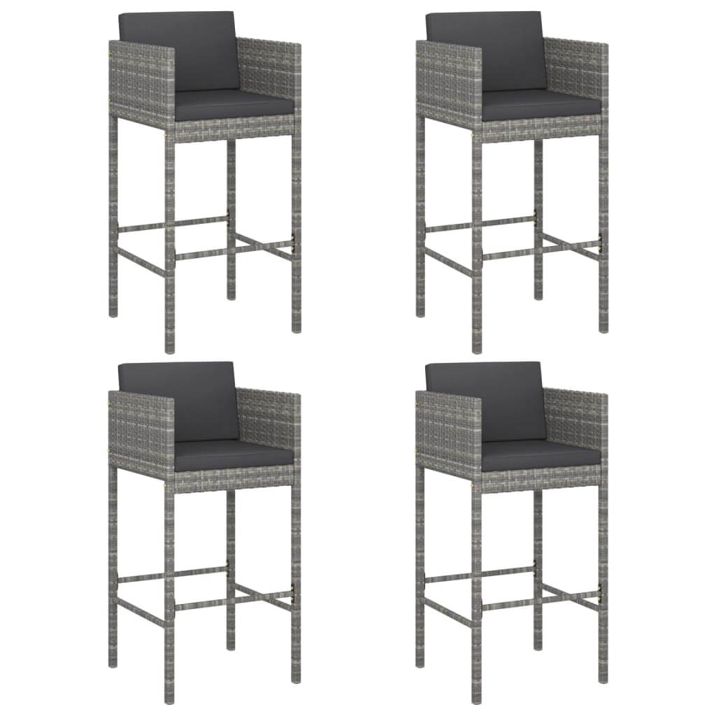 Bar Stools 4 pcs with Cushions  Poly Rattan