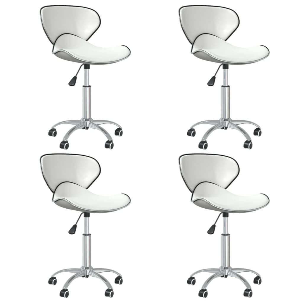 4-Piece Swivel Dining Chairs – Faux Leather UAE in white with chrome frames, showcasing modern design and adjustable height.