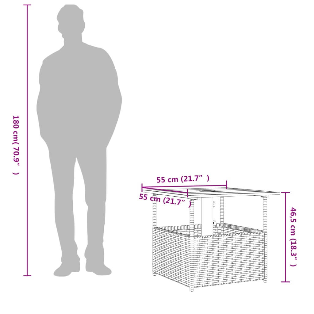 طاولة حديقة مع فتحة للمظلة 55×55×46.5 سم مصنوعة من البولي راتان