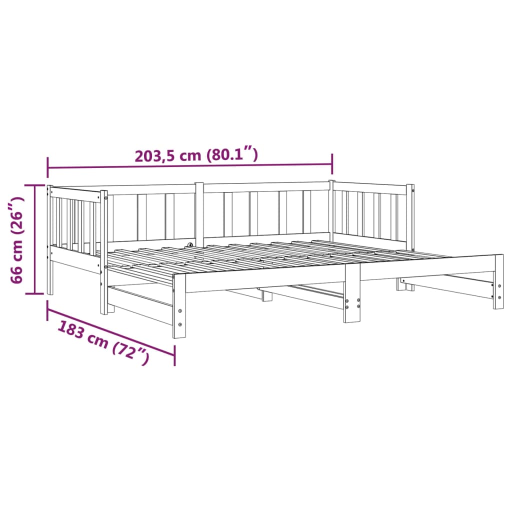 Pull-out day bed in white, made of solid pine wood, versatile for bedroom or living room use as a sofa or guest bed.