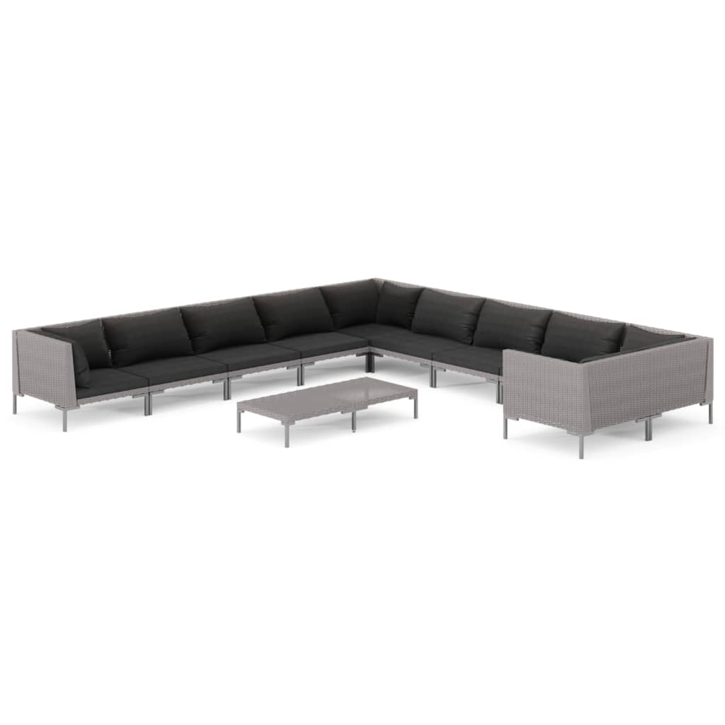 طقم أريكة حديقة مكون من 11 قطعة مع وسائد من البولي راتان الداكن