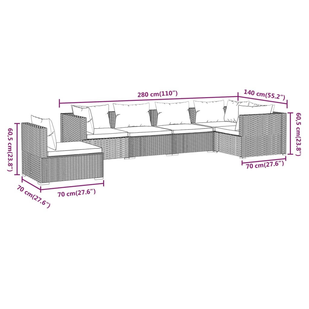6 Piece Garden Lounge Set with Cushions Poly Rattan