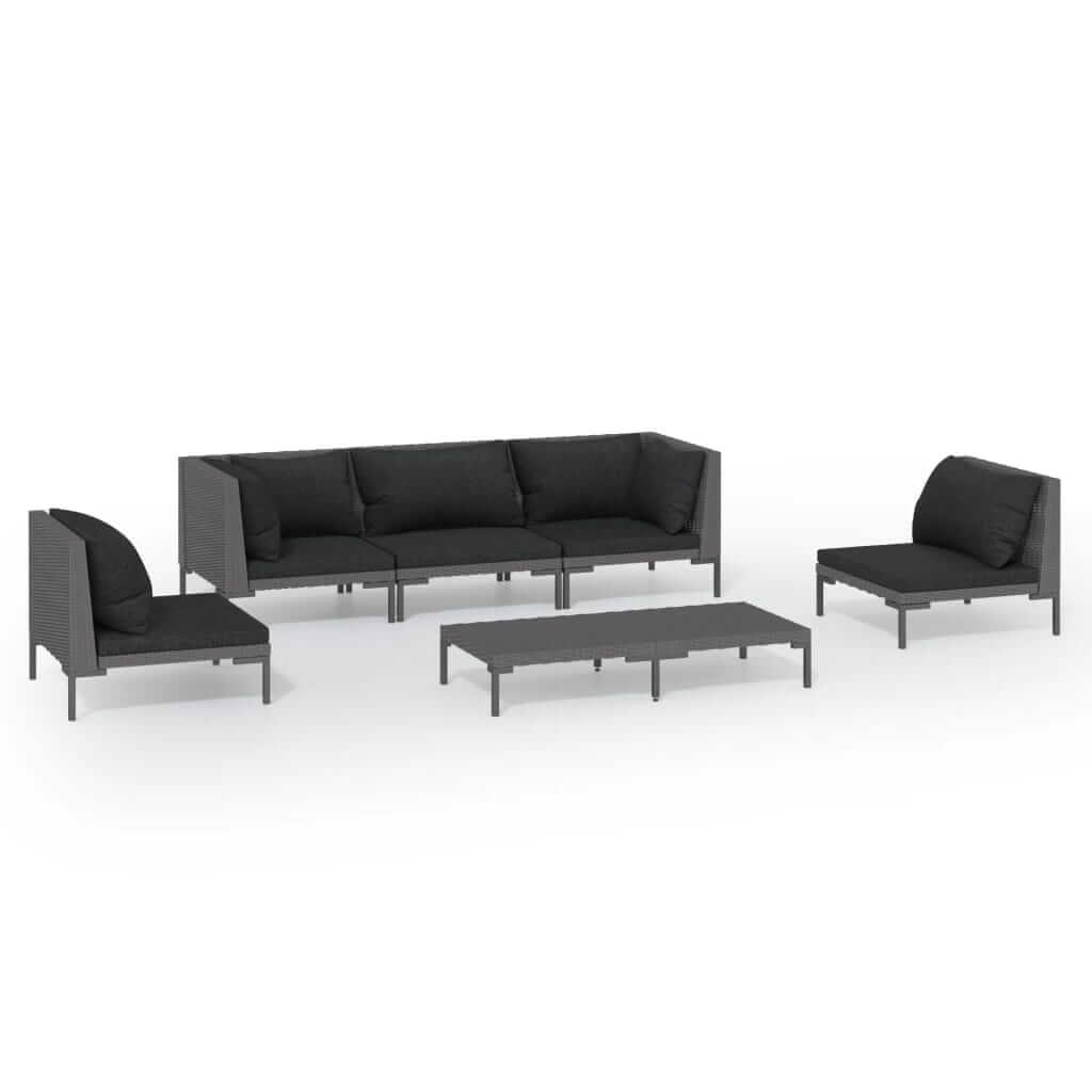 6 Piece Garden Lounge Set with Cushions Poly Rattan Dark featuring a stylish gray frame and black cushions.