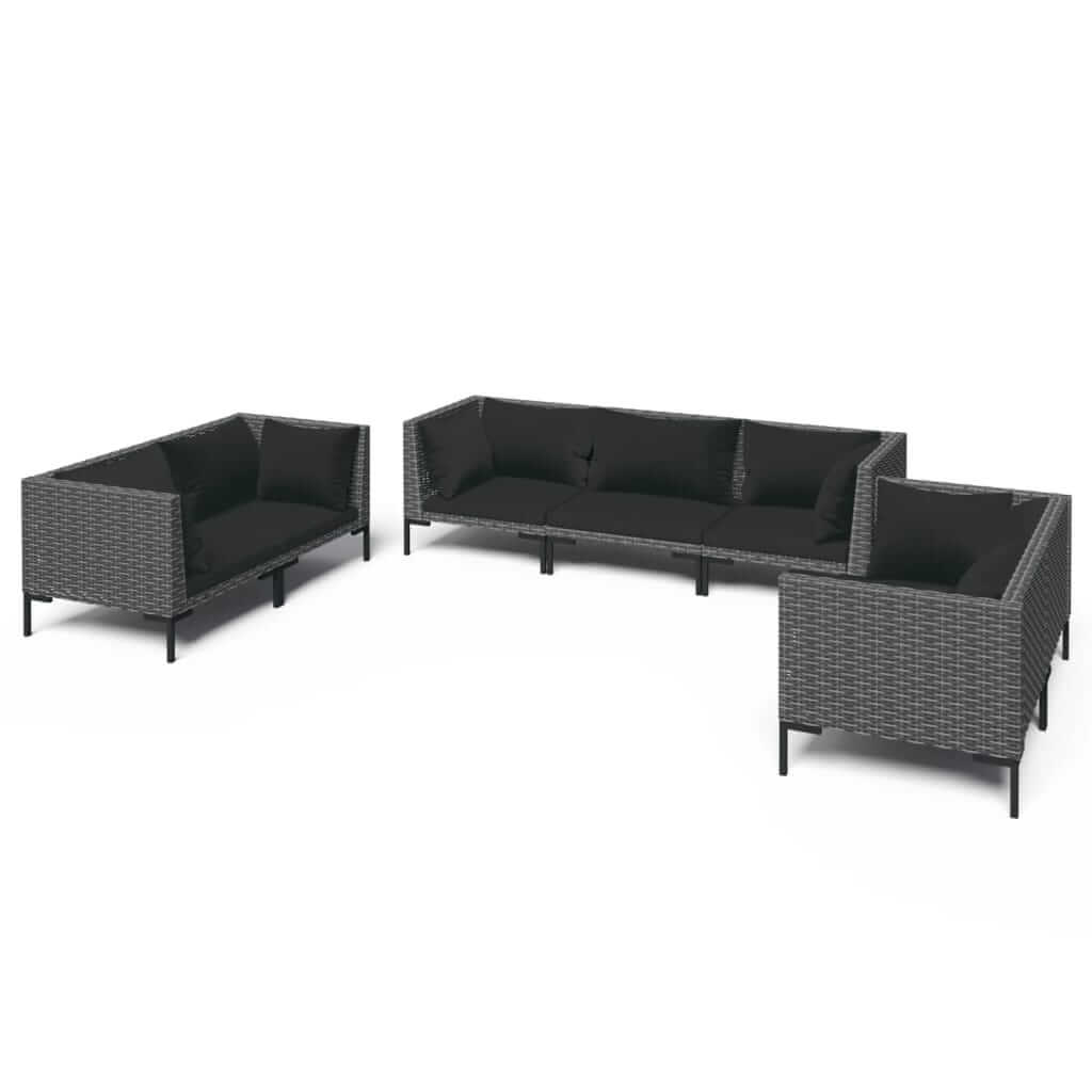7 Piece Garden Lounge Set with Cushions Poly Rattan Dark sectional sofa with black cushions and grey rattan frame.