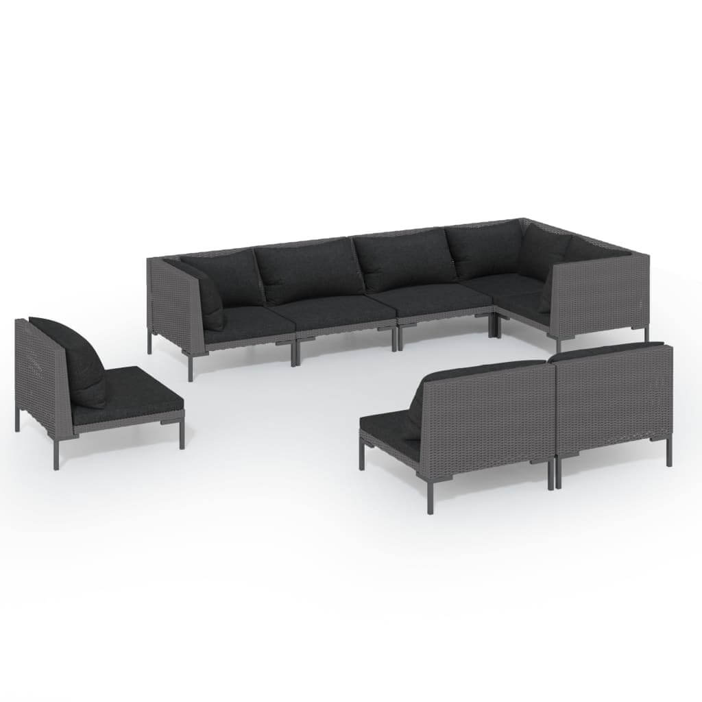 8 Piece Garden Lounge Set with Cushions Poly Rattan Dark in modern design for outdoor relaxation.