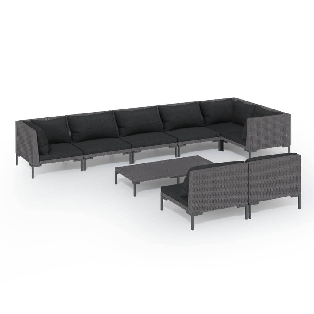 9 Piece Garden Lounge Set with Cushions Poly Rattan Dark modern outdoor seating with light gray cushions and coffee table