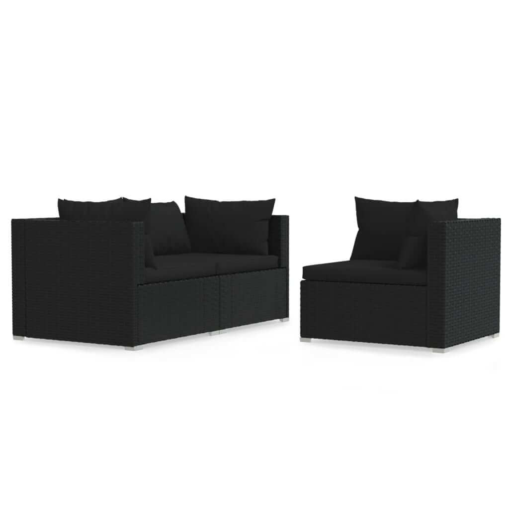 طقم جلوس حديقة من 3 قطع مع وسائد من البولي راتان