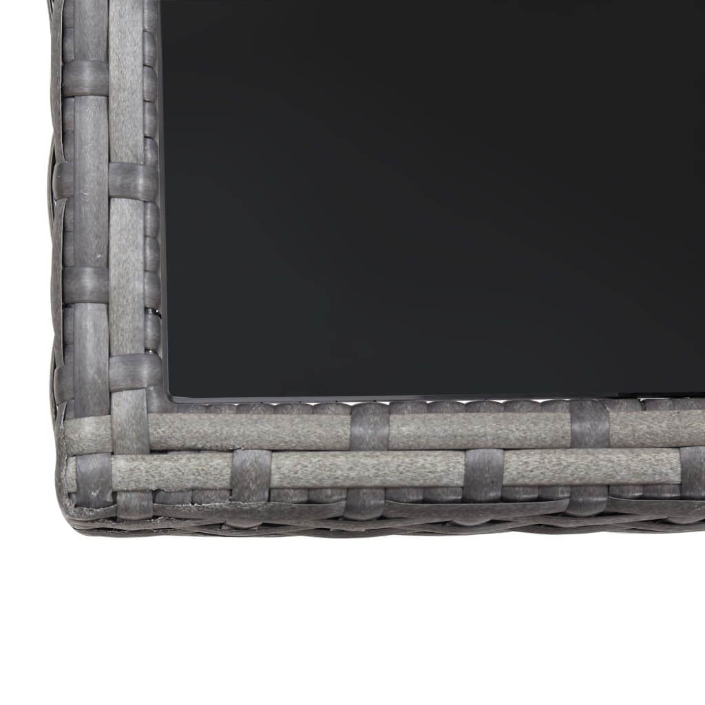 5 Piece Garden Dining Set Poly Rattan featuring a square glass table and four matching chairs in gray.