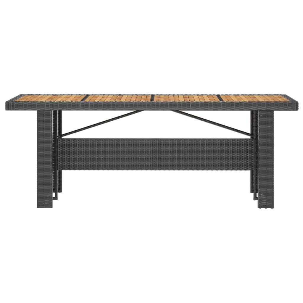 7 Piece Outdoor Dining Set with Cushions Poly Rattan table featuring solid acacia wood top and durable rattan base.