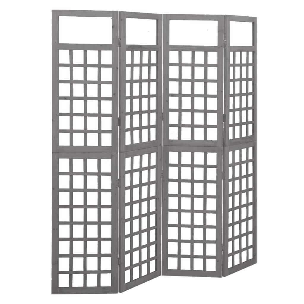 4-Panel Room Divider/Trellis Solid Fir Wood 161x180 cm provides plant support and privacy indoors, durable and versatile.
