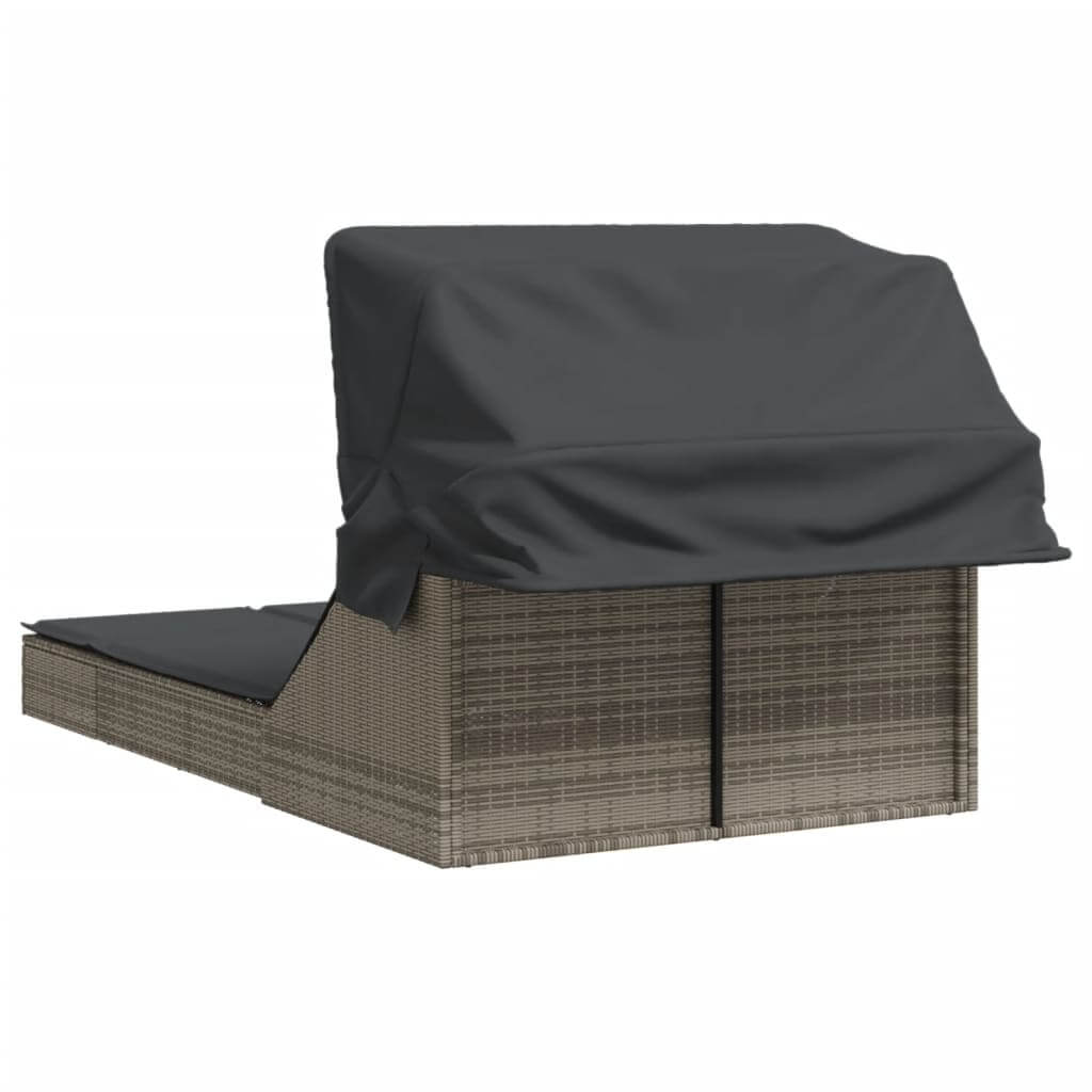 كرسي استرخاء مزدوج مع مظلة ووسائد من البولي راتان