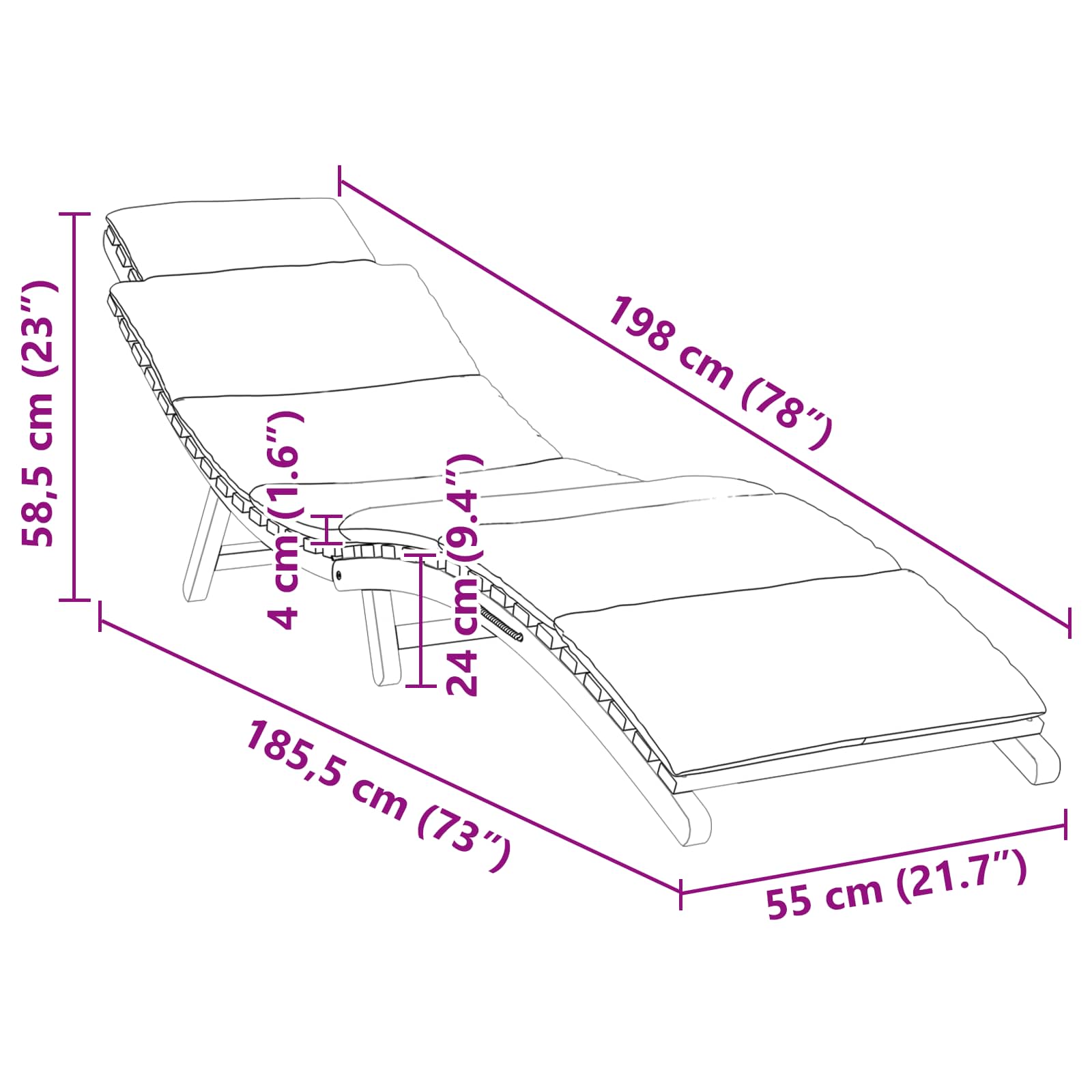 • الأبعاد الكلية: 198 × 55 × 58.5 سم (الطول × العرض × الارتفاع)