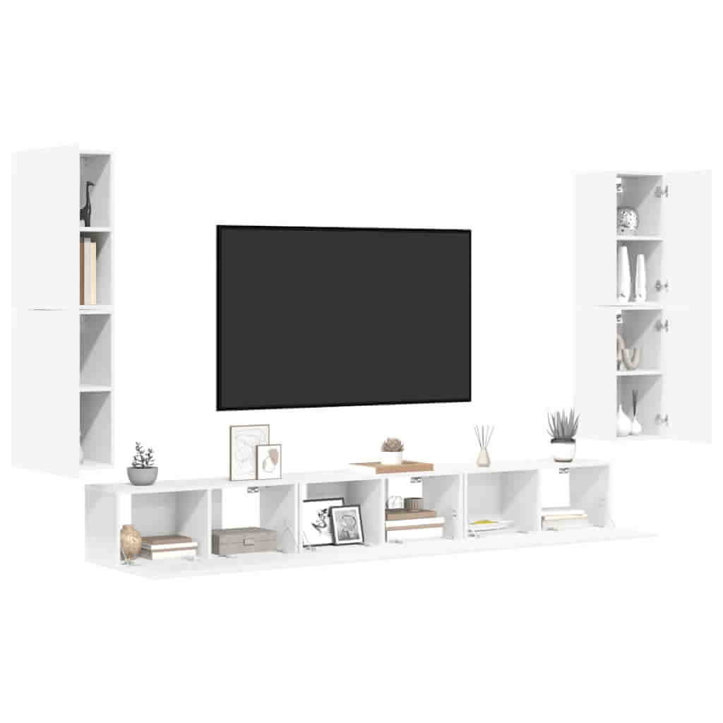 طقم خزانة تلفزيون 7 قطع من الخشب الهندسي