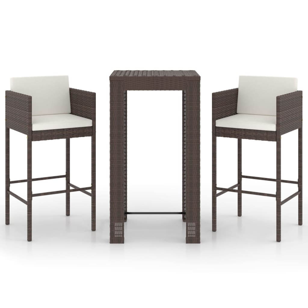 3 Piece Garden Bar Set with Cushions Poly Rattan outdoor bar table in dark brown rattan design.