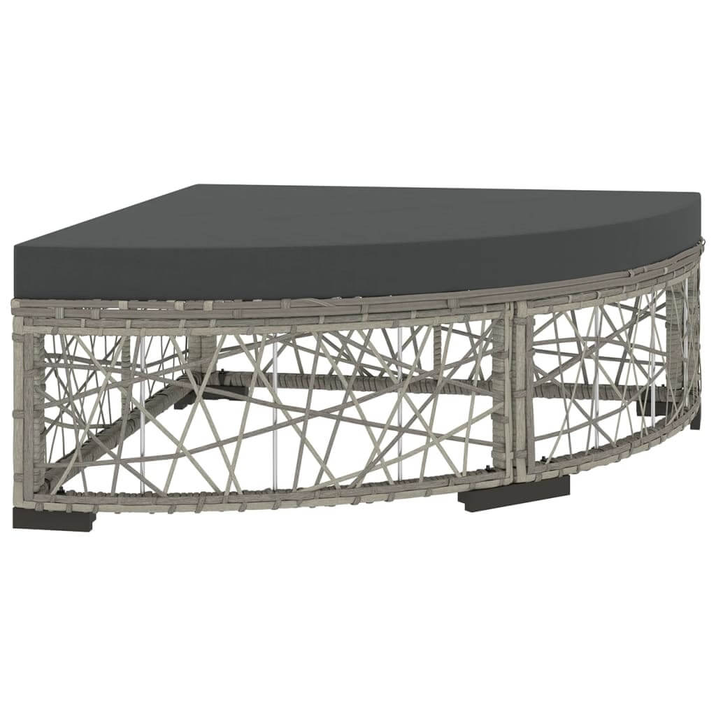 Delivery includes 1 x corner seating, 2 x middle seating, 2 x stool, 1 x fan shape footrest, 6 x seat cushions, and 4 x back cushions. Note: We recommend covering the set in the rain, snow and frost.