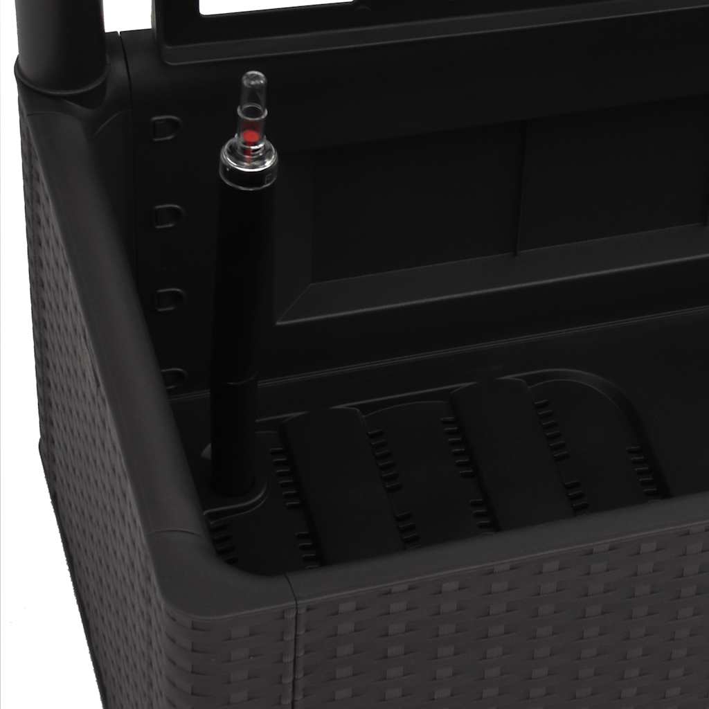 The built-in trellis offers excellent support for climbing plants, like herbs, tomatoes, beans, etc. Made of robust UV, weather and frost-resistant plastic, it is suitable for indoor and outdoor use. The design resembles a deceptively real rattan structure. The material is washable and easy to clean. Additionally, this box can automatically water plants by wicking moisture from its 90 L water reservoir and has water overflow holes to prevent overwatering. The level indicator is included.