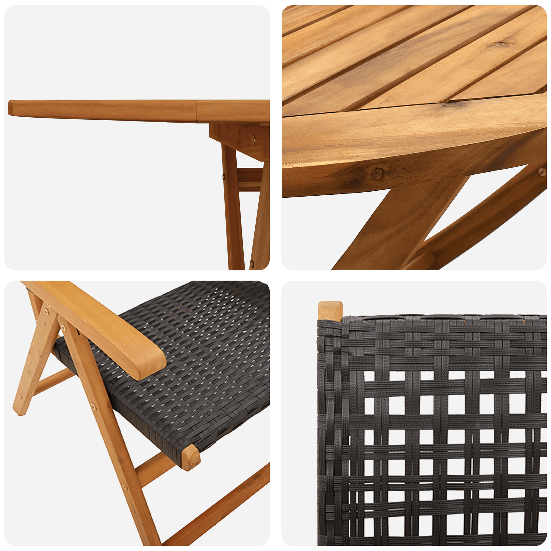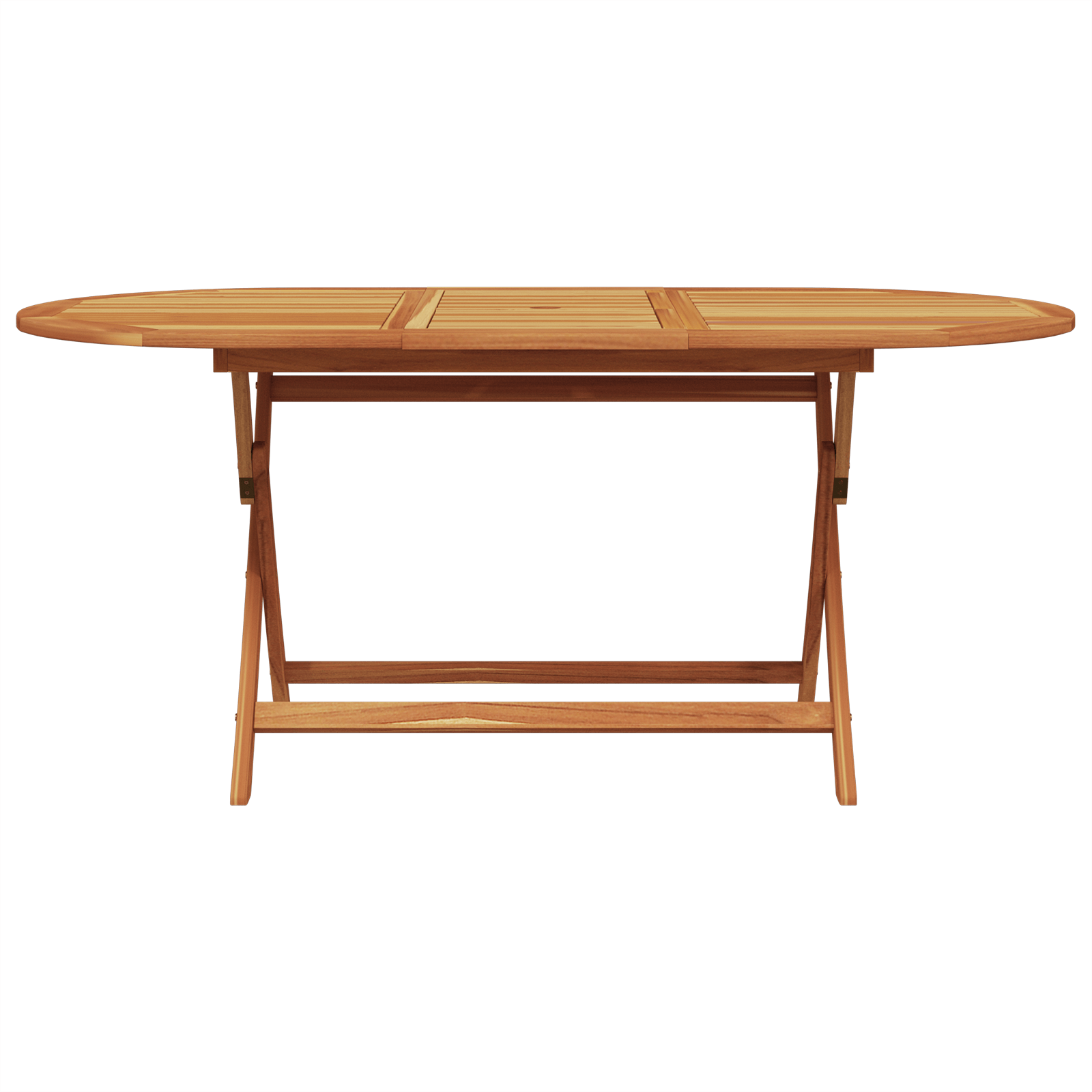 This folding acacia wood garden dining set blends elegance with practicality. The sturdy solid acacia wood frame ensures long-lasting durability, while the weather-resistant oiled finish protects against moisture and keeps it looking great. The set’s foldable design allows easy storage and transport. Its sleek oval shape and smooth finish bring a modern, stylish touch to any outdoor space. Easy to clean — simply wipe with a damp cloth.