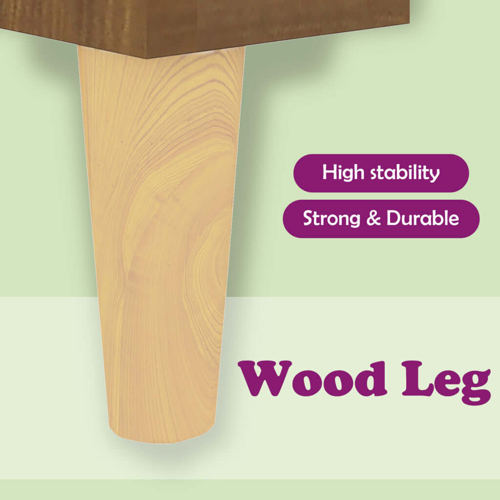 It features a Scandinavian charm. This bed stand with four wooden legs is stable and sturdy. Additionally, the nightstand is equipped with two drawers that offer ample storage space to keep items orderly and organised. It is easy to clean with a damp cloth.