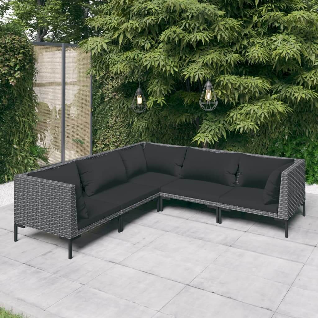 VidaXL Garden Lounge 5 Piece Set with Cushions Poly Rattan Dark